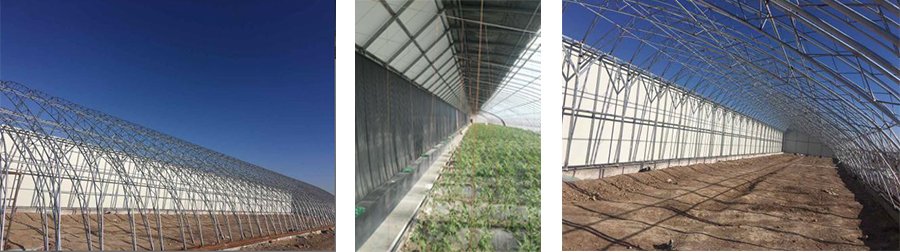 該溫室骨架為熱鍍鋅鋼材焊接,后墻為熱鍍鋅鋼材組裝,采用彩鋼板后墻保溫和相變蓄熱系統代替土墻和磚墻等蓄熱體,解決裝配式日光溫室的蓄放熱問題,實現日光溫室部件的工廠化生產和安裝的標準化裝配。